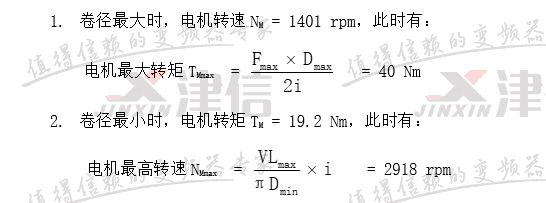 收卷轉(zhuǎn)矩控制利用異步伺服電機(jī)的恒功率特性,可以達(dá)到理想的控制效果。下面以空卷卷徑600mm,滿卷卷徑1250mm的收卷盤為例,說明電機(jī)應(yīng)該如何選型。